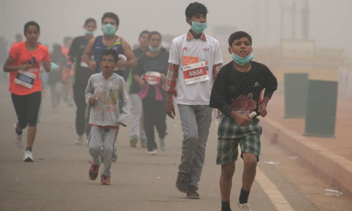 Young Indian runners take part in the New Delhi 10k Challenge amid heavy smog on Sunday. Photograph: Dominique Faget/AFP/Getty Images
