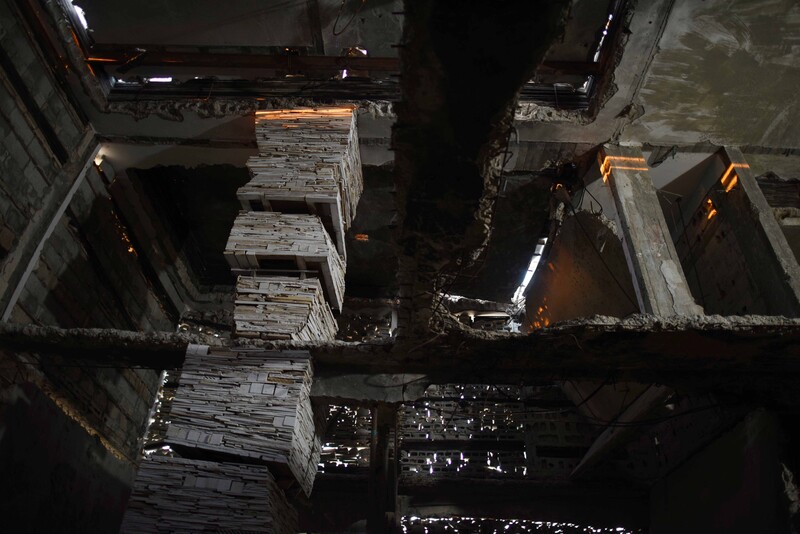 In this landscape of rubble and despair, Teeuwen saw an opportunity to create art from destruction, impose order on a crumbled world. “War,” she writes in a press release about the installation, “is complete chaos and order is beauty.”