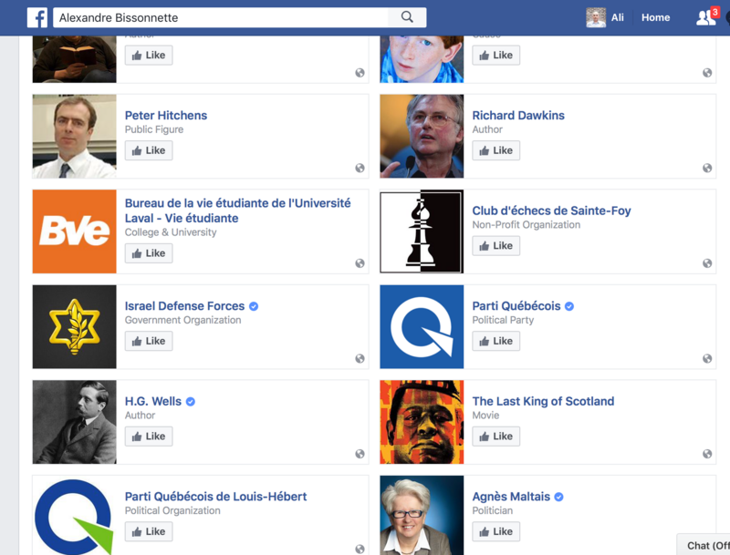A screenshot from Bissonnette’s Facebook page shows he “liked” the official account of the Israeli army.