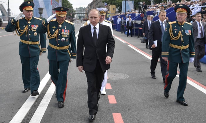 Vladimir Putin at a Russian Navy Day parade In St Petersburg in July. Photograph: Tass/Barcroft Images
