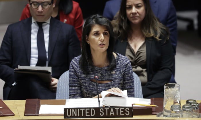 Nikki Haley at United Nations headquarters on 22 December 2017. Photograph: Mark Lennihan/AP
