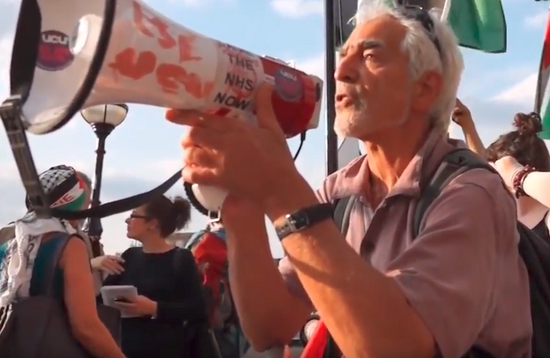 Palestine solidarity activist Glyn Secker at a 2012 demonstration. (inminds/YouTube)