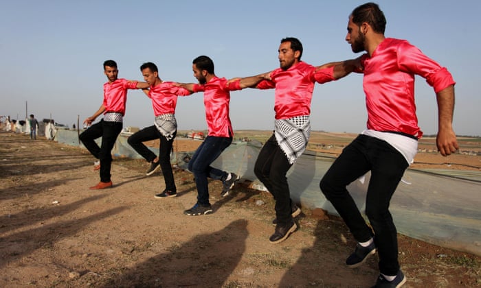 But as the idea turned into a real plan, organisers modified it to avoid danger at the border and agreed they would pitch tents and have meals, traditional dabke dancing, football games and even weddings hundreds of metres from the perimeter. “We are looking for a new culture,” he said, showing a video on his phone of a marriage at the protest camp last weekend.
