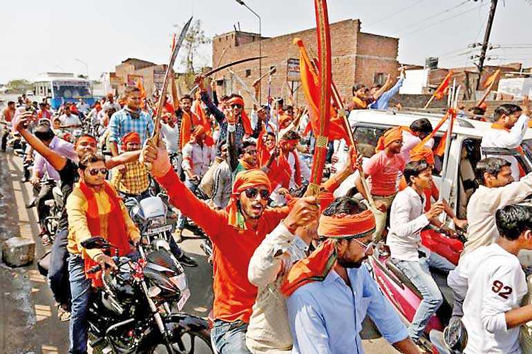 Hindu Yuva Vahini demonstrating for building of the Lord Rama temple in Ayodhya in place of a 16th century mosque