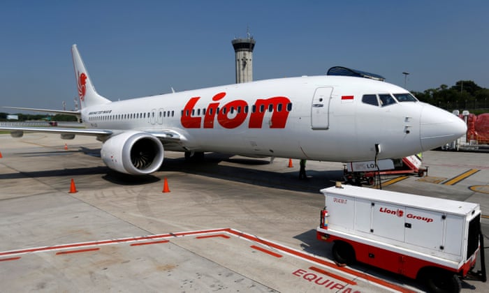 A Lion Air Boeing 737 Max 8 plane on the tarmac of Soekarno-Hatta airport near Jakarta. Photograph: Willy Kurniawan/Reuters