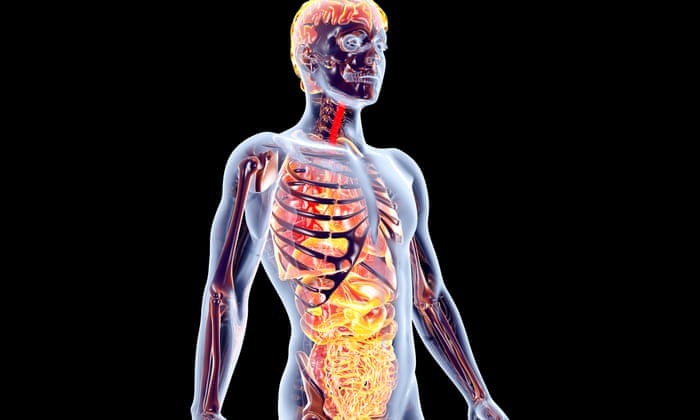 Nicola Davis@NicolaKSDavis-The latest findings, based on studies in mice, back up a long-held theory that abnormally folded alpha-synuclein might start off in the gut and spread to the brain. Photograph: Spectral/Alamy