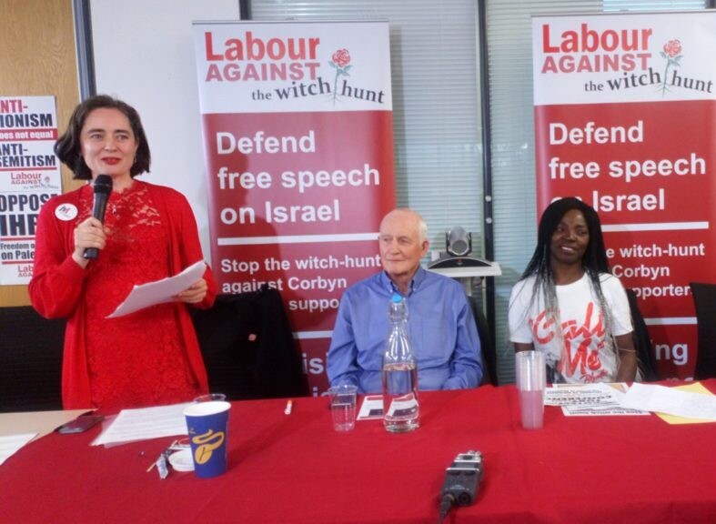 Jo Bird addressing a meeting in 2018. (Labour Against the Witch Hunt)
