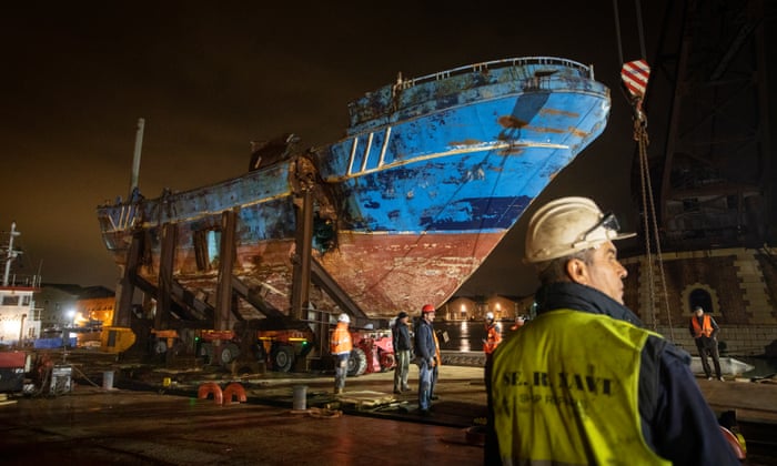 The boat was brought to Venice from the Melilli naval base in Sicily. Photograph: David Levene/The Guardian